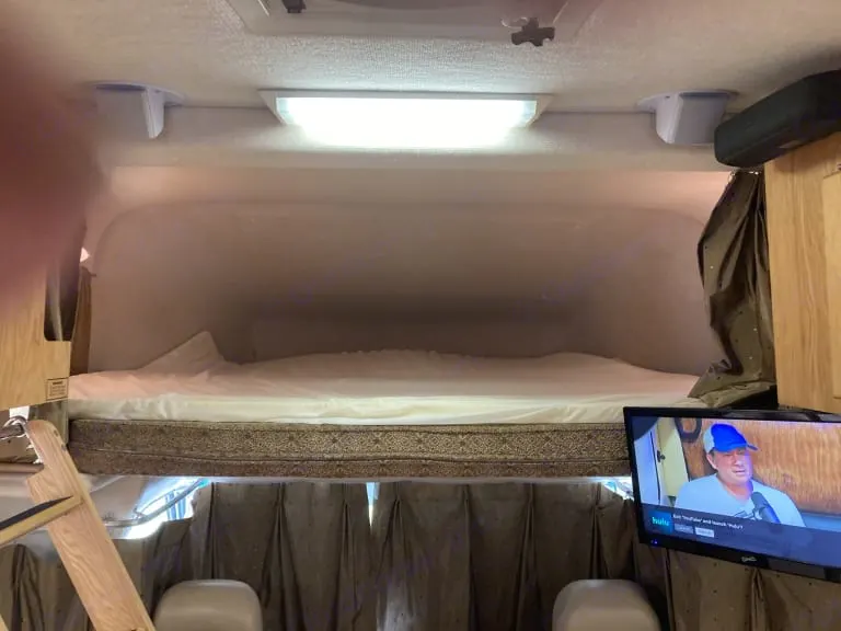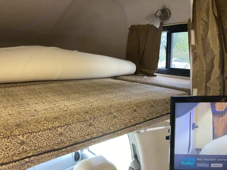 +Comfortable Sleeping Arrangements: the lofted cab bed and folding couch can sleep up to four.+Equipped Kitchen: Includes the essentials – dishes, utensils, pots, pans, coffee and more.+Other Amenities: The bathroom includes a shower flush toilet combination, hand sink, and full medicine cabinet. The 6-gallon hot water tank allows for a complete shower and reheats quickly. There is a freshwater tank that provides water in the motorhome if you are not connected to a water source. The outside of the motorhome has ample storage space and an outdoor shower.+Convenient Add-Ons: delivery can be arranged when scheduling in advance.+Mileage & Generator: 100 miles per day included, $0.55 per mile overage. 4 hours of generator usage per day included, $5 per hour overage.Note: Bedding is not included.Flexible Rentals: Minimum rental period of 3 nights. Enjoy a 10% discount for weekly rentals and 15% off for 14+ day rentals. Ask about our mid-week specials for additional savings! We are also flexible with return and arrival windows--just ask!Embark on your adventure with confidence, knowing you have a reliable and well-loved RV to call home. Book now and start making unforgettable memories on the open road.What's includedComes equipped with items to make your adventure comfortable and enjoyable:+Kitchen Essentials: Includes the essentials – dishes, utensils, pots, pans, coffee and more.+Entertainment: TV/DVD Combo w/Roku capabilities, board games and cards.+Cleaning Supplies: Basic cleaning supplies and trash bags to keep the RV tidy during your trip.+First Aid Kit: For any minor injuries or emergencies.We strive to make your experience as comfortable and hassle-free as possible!Recommendations+Devil's Lake State Park: Explore the stunning quartzite bluffs, hike scenic trails, and enjoy swimming or kayaking in the crystal-clear lake.+Door County: Visit this picturesque peninsula known for its charming small towns, beautiful shoreline, and outdoor activities like biking, hiking, and fishing.+Apostle Islands National Lakeshore: Take a trip to the northern part of the state and explore sea caves, lighthouse tours, and pristine beaches on Lake Superior. Other things to noteWe want to ensure you have a smooth and enjoyable experience. If you have any questions or need assistance during your rental, don’t hesitate to reach out.
