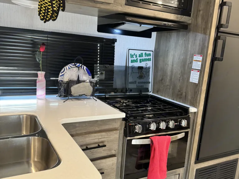• Other things to notePlease NO SMOKING INSIDE CAMPER.It is pet friendly, there are water and food bowls inside as well as a few toys.TV in main living area with Firestick attached.Camper is cleaned and sanitized before every rental including fresh linens, towel, wash clothes, paper products, cleaning supplies and toiletriesI do supply K-cups for Keurig. If you have a favorite brand you prefer please let me know.