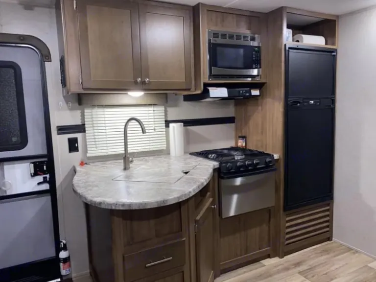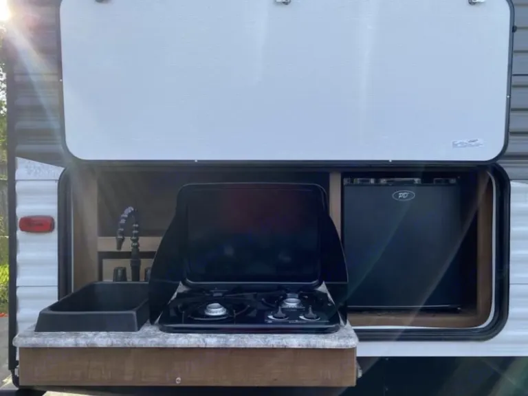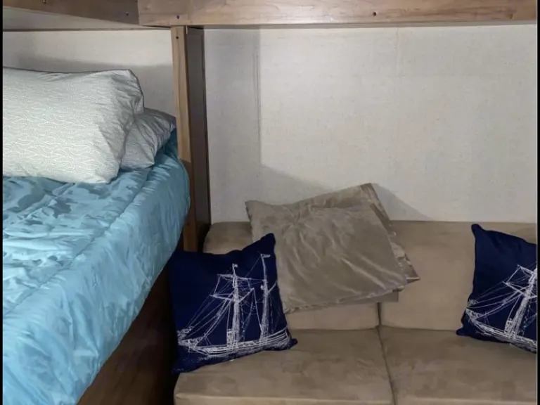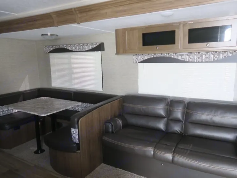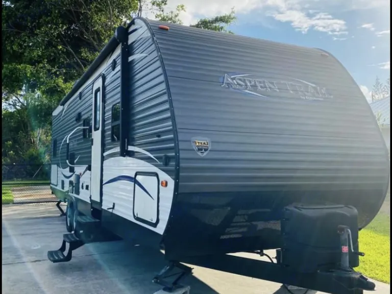 We have four kids. Four kids means a standard bunkhouse camper with two bunk beds just doesn't cut it - unless we are looking for someone to be ninja-kicked to the floor in the middle of the night.This 2018 Aspen Trail has a full bunk house with three beds and a nugget-style couch. In addition to the living area couch and dinette converting to sleeping areas, there is also a main bedroom with separate door and queen accommodations.This camper comes fully stocked with linens and towels, kitchen supplies, and has a full kitchen area for comfortable cooking. There is a bathroom with tub/shower and separate sink, as well as an outdoor shower.