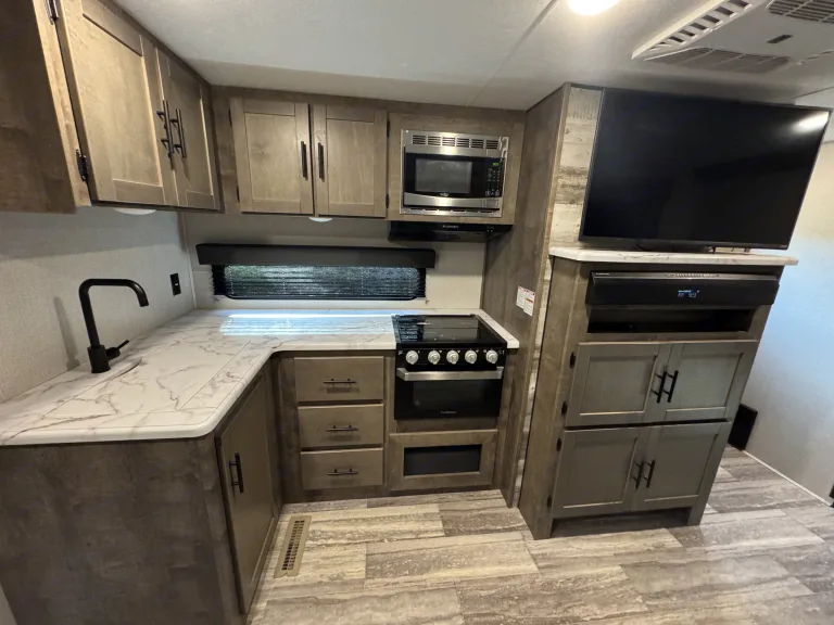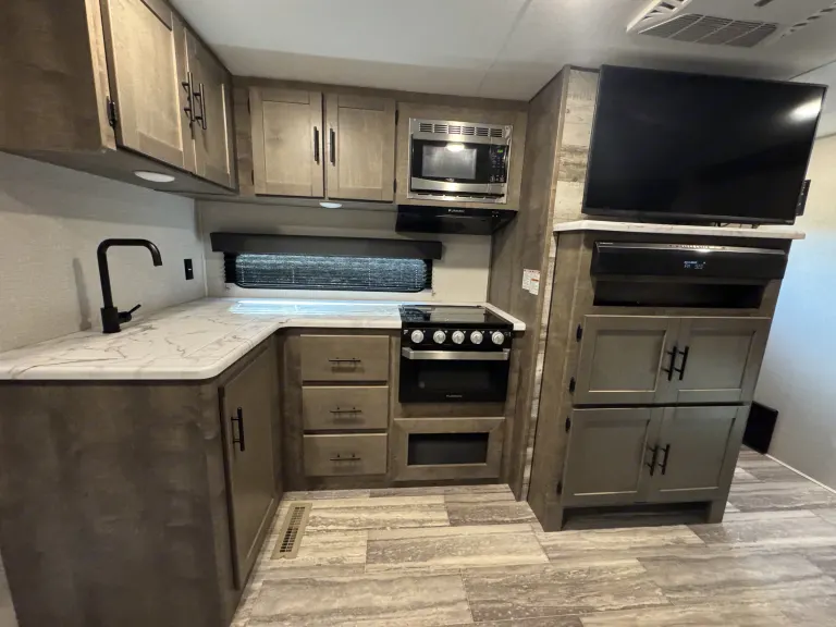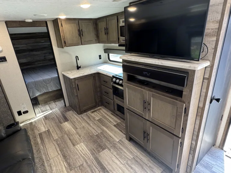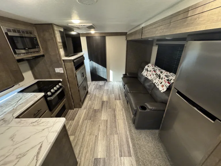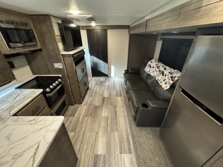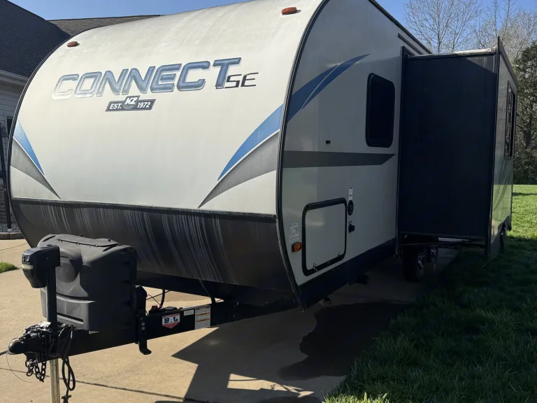 Introducing the 2020 Keystone K-Z Connect C221Rbse Travel Trailer – your perfect companion for a comfortable and memorable outdoor adventure. This compact yet spacious travel trailer is designed with modern amenities to ensure that you have everything you need for a relaxing trip, whether you're traveling for a weekend getaway or an extended road trip.Step inside to discover an inviting interior featuring a well-designed living space with a cozy lounge area, complete with plush seating and a large flat-screen TV for entertainment. The well-equipped kitchen includes a three-burner cooktop, microwave, refrigerator, and ample counter space, making it easy to prepare your favorite meals while on the road.The Keystone K-Z Connect 221Rbse comfortably sleeps up to four people, with a queen-size bed in the private master bedroom and a convertible dinette for additional sleeping space. Whether you're unwinding after a day of exploration or getting ready for another adventure, you'll find plenty of space to rest and recharge.The bathroom features a spacious shower, toilet, and sink, providing all the comforts of home while you’re on the go. Outside, the trailer is equipped with an electric awning, perfect for relaxing outdoors in comfort, and ample storage space for all your gear and equipment.The 2020 Keystone K-Z Connect C221Rbse Travel Trailer is ideal for those seeking a combination of convenience, comfort, and adventure. Book your rental today and hit the road in style and comfort!