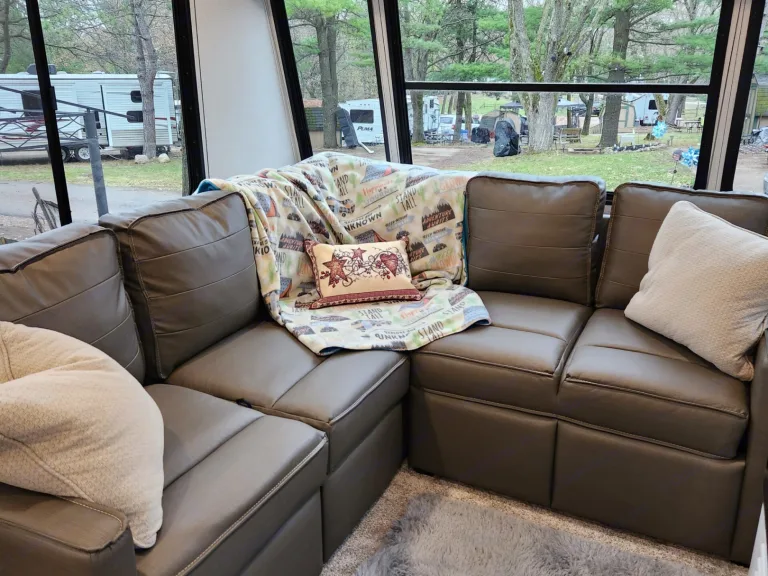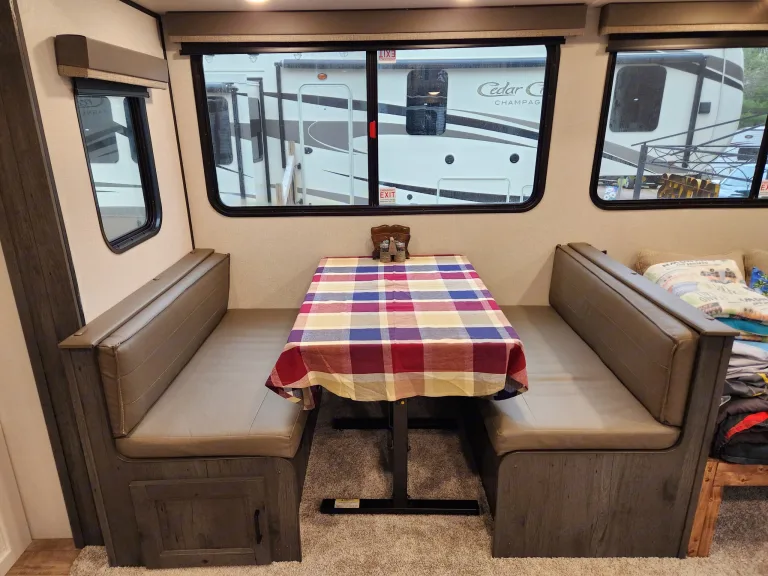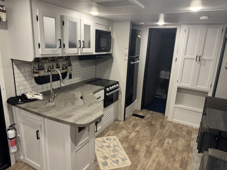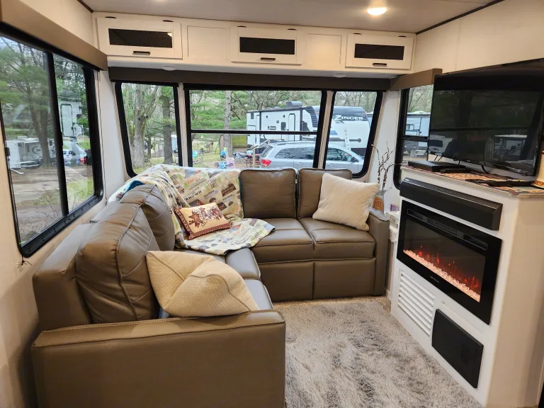 Enjoy the comfort of home while surrounded by the beauty of the outdoors in this luxurious 2022 Keystone Hideout 38Fdds Park Model. Perfect for extended stays, seasonal camping, or a family getaway, this camper offers the ideal blend of space, style, and convenience. With two slide-outs, you’ll enjoy a spacious front living room with large windows, comfortable seating, and an entertainment center for relaxing after a day of adventure. The fully equipped kitchen includes a full-size refrigerator, three-burner range with oven, microwave, and plenty of storage, making meal prep easy. A private king bedroom offers generous wardrobe space and a sliding door for privacy, while the convertible sofa bed accommodates additional guests. The full bathroom features a residential shower, vanity, and flushing toilet, and central air and heat provide year-round comfort.This Hideout is perfect for long-term or seasonal stays, family vacations where space matters, or work-from-anywhere getaways. Delivery and setup are required, as this is a park model that must be placed at your campsite or seasonal spot, but we handle all the work so you can simply arrive and enjoy. Optional full stocking with linens, cookware, and utensils is available, and we are pet-friendly—just ask about our policy. Whether you’re staying for a weekend or a month, this Keystone Hideout offers a true home-away-from-home experience you’ll love.