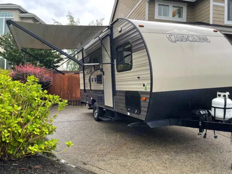 This ultra lite bunk house is perfect for families looking to get away. It's light weight makes it towable by most SUVs. Up front there is a queen bed and there are 2 bunks in the back. Each of the beds has its own USB jacks to keep your devices charged. The dinette can be converted for additional sleeping option, ideally for a child or smaller person. The kitchen contains a propane stove, microwave, sink, coffee maker, and a refrigerator with small freezer. The trailer includes a Roku TV, TV Antenna, and Bluetooth CD/DVD player with both indoor and outdoor speakers. The trailer also has air conditioning and a motorized awning.This unit comes well-stocked for your enjoyment. The kitchen comes stocked with pots, pans, plates, bowls, cups, and utensils. All bedding as well as bath and hand towels are included. For outdoor entertainment, we've included a folding table and chairs, as well as a propane grill.What's includedAll items listed in description are included without additional fees.RecommendationsGoingtocamp is a great website for finding available camp sites.Other things to noteThis is an ultra lite with smaller tanks. This trailer is ideal for sites that have hookups.The trailer uses a 2" Ball and a 7-pin connection. Washington state requires an electric brake controller on the towing vehicle.I do work 8-5 PM, so pickup will generally be after 6:30 PM. I am available to do the walk-through prior to the pickup date to facilitate an earlier pickup time, so please inquire if necessary. For drop-off, we are flexible depending on whether or not the trailer is reserved for pickup the following day.We are Pet-Friendly but please ensure your pet is flea-treated, and pets are not to be left alone in the unit.