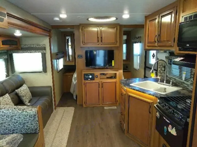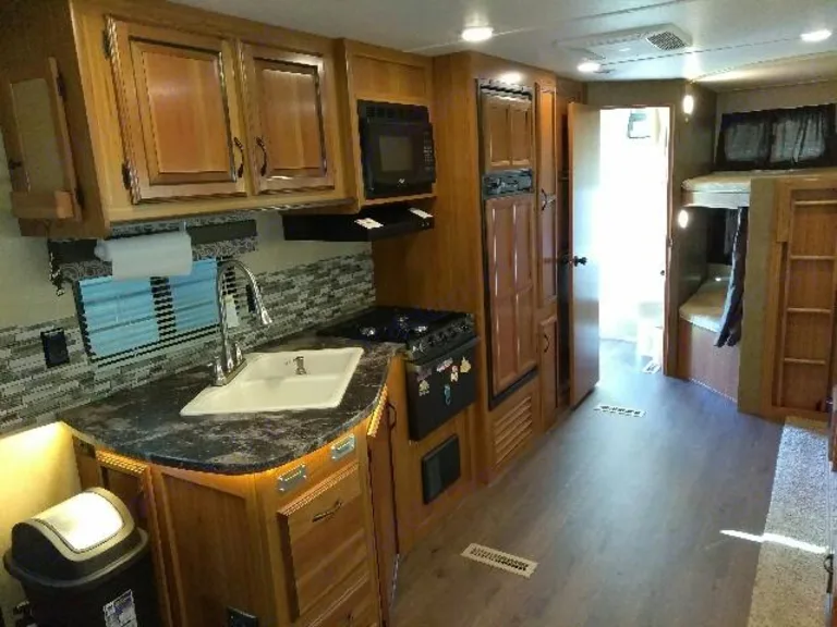 This is like brand new 2017 29' luxury RV. Sleeps up to 7 people. This RV has an extra room in the back for kids with an entertainment unit. It was built for comfort and has a large, one touch, two pop out slide for even more room. Your rental will include 2 full propane tanks, all linens, basic toiletries, pots, pans, toaster, coffee maker, coffee, sugar, creamer, plates, cups, bowls, silverware, cooking utensils, paper plates, plastic utensils, aluminum foil, ziplock bags, spices, cooking oil, basic cleaning supplies, toilet paper, paper towels, outdoor mat, 4 camp chairs, a Folding Massaging Chair, 6' folding table, bug spray, playing cards, frisbee, soccer ball, football, games, a selection of DVD movies, ALL Included AT NO Extra Charge! Plus if you are doing the towing, we offer our weight distribution hitch, sway bar and wireless backup camera for NO FEE. However, if towing, you must obtain an insurance binder from your insurance company to cover the trailer. Your vehicle must have, at minimum, an 8,000 lb. towing capacity. If towing is a problem, we can deliver and set up the RV for a nominal fee. Fee rates will be determined by distance traveled and length of stay. The first 25 miles are free. If the location you are traveling to does not offer full hookup, we offer a generator for rent. We upgraded the interior TV to a Smart TV so you can stream seamlessly from your phone or, with WiFi connection, you can connect the TV to stream Netflix, Hulu, etc. There is also a TV in the kid's room and outdoor kitchen, HD antennae that will allow you to connect with free local broadcast stations if you have no access to cable hookup. We have a CD player with radio that also has speakers outside which allow you to enjoy your music outside as well. The inside kitchen is fully stocked with all the basics. The built in refrigerator and freezer are large for this size RV with 6 cubic feet of refrigerated storage space. We will ensure the refrigerator is cold upon delivery so you can immediately begin to use. There is a 3 burner gas stove and oven as well as a powerful microwave oven with splatter cover. The outdoor kitchen is equipped with an outdoor grill with a burner stove, hand wash sink, slide out counter for extra space and a small refrigerator. The master bedroom features a queen bed with his and hers hanging closets, night stands, and sliding pocket doors for complete privacy. You can rotate the Smart TV for easy enjoyment in the master bedroom. The second room in the back (or kids room) has built in shelves and cabinets with for TV/DVD and has a privacy curtain. The second room has a pull out coach and a bunk bed above the couch. It also has a bunk bed above the entertainment unit and a trundle bed under the coach. The dinette has a large table that fits 4 to 5 people that easily converts into a full size bed and the couch has a pull out bed that is also full size. There are shades throughout the RV to keep your privacy and keep the light out when necessary. The bathroom is stocked with some basic toiletries. The RV has an AC/furnace unit and has central air vents located throughout the RV, keeping you nice and toasty during those cool camp outs. The water heater can run off of propane or electric. Outside features include a power tongue jack and fully electric front and rear stabilizers, no hand cranking needed. Front pass through storage. Fully automated push button awning has outdoor lights. Water hookup has water filter attached. There is also an outside shower. We hope you feel like you walked into a fully stocked home that is yours for the duration of your stay. Bring only your clothes, food and any specific items you will need to enjoy your vacation. We would like to offer a memorable experience for our renters that you will always treasure. We would love to provide our services if you chose to make our camper your home away from home. Please contact us with any questions or concerns, either through RV share or you can call us anyti Abraham.