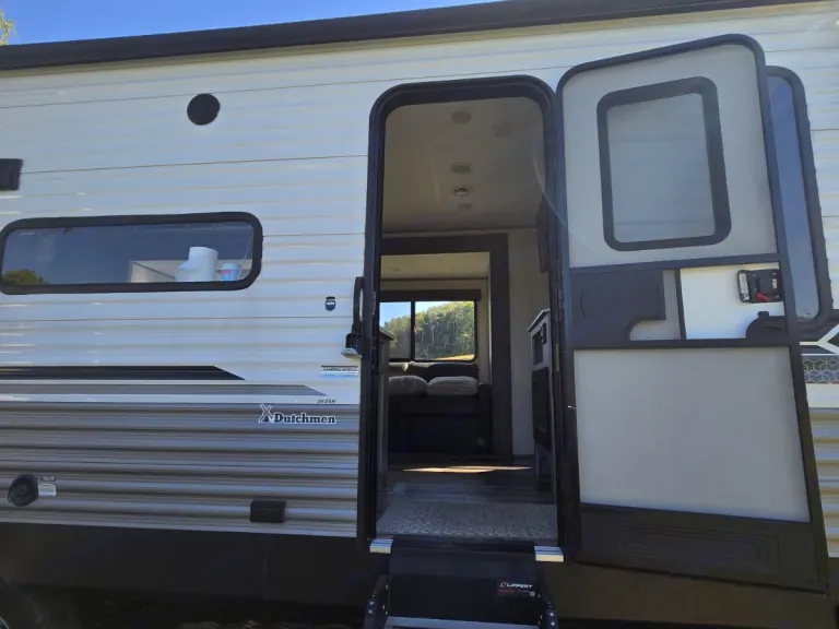 Enjoy shaded outdoor living with the power awning; pet-friendly too!