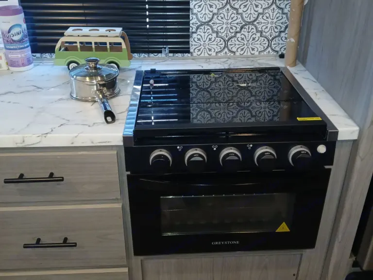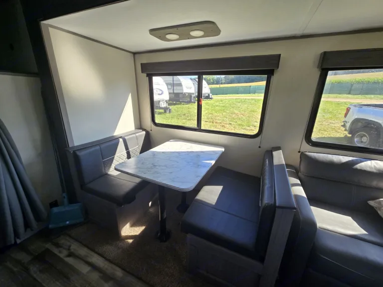 A large slide-out creates extra living room; just bring food for the trip!