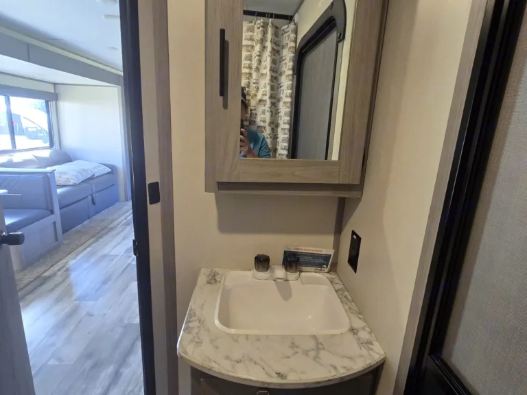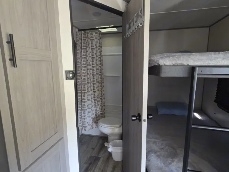 Ideal for families, this bunkhouse RV offers space for everyone to relax.