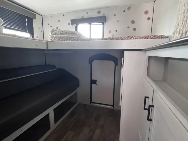 • The mattress are camper style, super thin, we do have a topper in the master bed, but not in the other rooms if you want to be more comfortable.