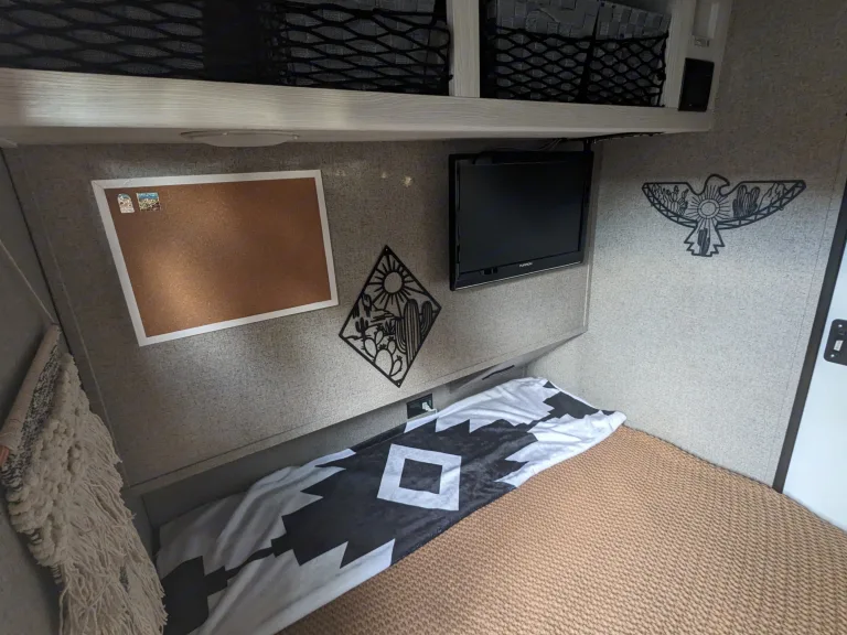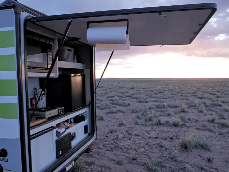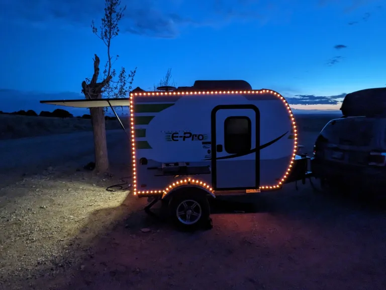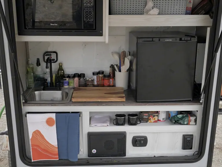 This little trailer is perfect for your week or weekend getaway. This sleek and nimble travel trailer is your ticket to a world of outdoor exploration and cozy comfort.Whether you're a solo adventurer or a couple seeking the perfect getaway, this compact yet feature-packed camper is ready to elevate your outdoor experience. At just 1,200 lbs, this trailer is lightweight and easily towable by almost any vehicle with a hitch.The trailer is complete with everything you need for a getaway, including cooking supplies, utensils, spices, coffee/tea, bedding, and bath accessories. See the full list of included items and features below. If you have questions, just let me know!**I'm also able to Deliver and SET UP the camper within a 60-Mile Radius of Denver so you can focus entirely on relaxing and getting away! Inquire about my delivery service.**Features:• Heat