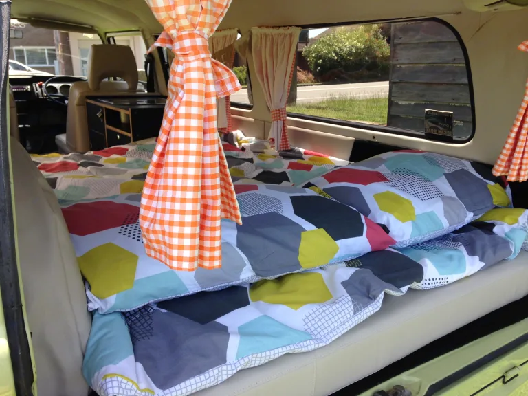 Beryl is a 1974 Bay window "beryl green" kombi and cute as a button. she is automatic and kept in absolute premium condition for our hires. She comes equipped with queen bed, fridge, all pots, pans, plates cutlery etc. She also has a large awning + camp chairs and table. Beryl is available to hire around the Hunter Valley, Newcastle, Lake Macquarie & Port Stephens/Nelson Bay areas. Longer trips can be considered. But before approving any hire we would like to talk to you directly first.