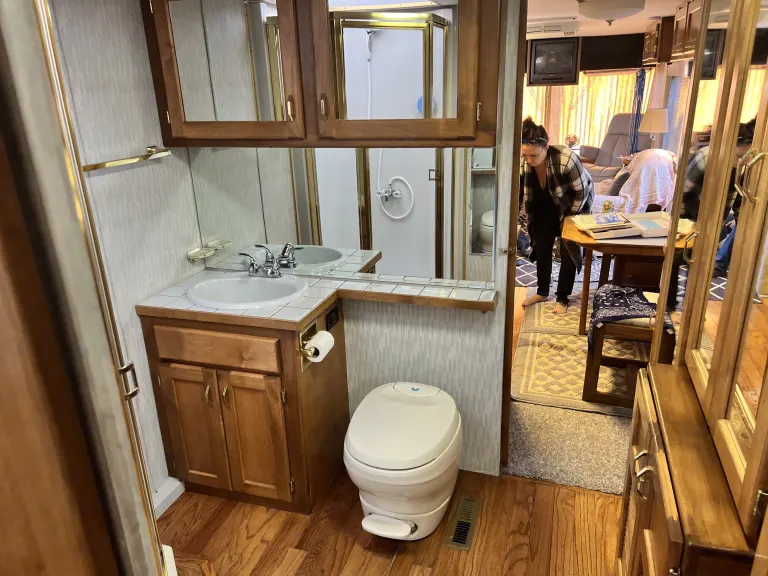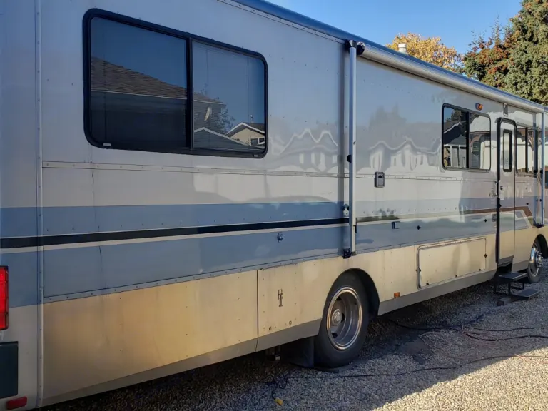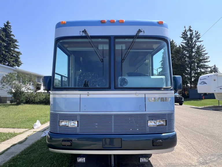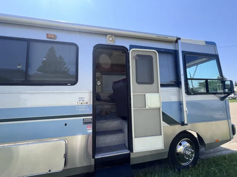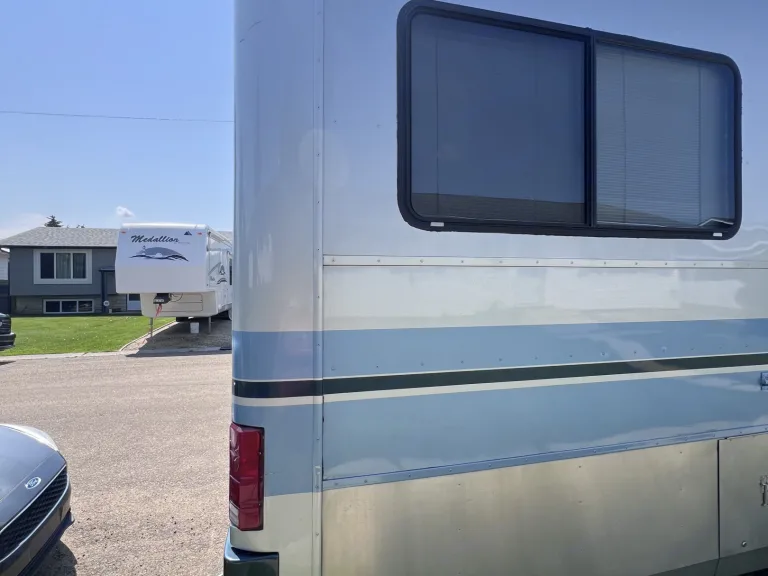 No air brake endorsement needed—vacuum-over-hydraulic braking keeps it simple.Condition: Third owners, pampered with new tires (2 years old). Two rooftop ACs and a 6.5 KW propane generator power everything, including a convection/microwave oven and washer/dryer combo (bring your own detergent, hook up to sewage/water/power).Sleep & Live: Queen bed in the rear, double jackknife sofa bed for guests or grandkids. Perfect for a couple plus a few tag-alongs. Stand-up shower, 100-gal fuel, 100-gal fresh water, 50-gal grey/black tanks. Boondock-ready for over a week with occasional generator use.Tech & Toys: Backup camera, Class III tow hitch, inverter for small appliances. Original TVs (soon to be swapped for a 43” smart TV with Blu-Ray—pack your movies!). Awning, campground hookups (including cable), and all essentials: towels, coffee maker, pots, pans, utensils, paper towels, TP. Fridge/freezer ice-cold with notice.Delivery: We’ll drop it off within 250 km of our base for $1/km one way (same for pickup).This self-sufficient, retro-cool RV is ready to make your next adventure legendary. Book now and hit the road in style!What's includedYour rental comes loaded with these outdoor essentials for a cozy, hassle-free campsite: