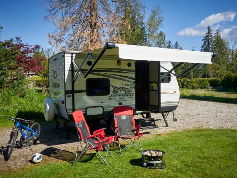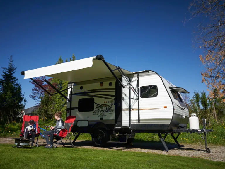 Power Retractable AwningWater tanks will be filled with city tap waterDry Weight: 2700 lbs -Total Length: 18 feet - Height: 9.2 feet -Width: 8 feetTHE Trailer CAN BE Towed With ANY V6 SUV With Minim 4000 LBS Towing CapacityTow vehicle must have the standard 7-point plug brake controller and a 2" hitch ball at an ideal height of 24" from ground to the top of the ball.$150 cleaning fee will be charged for unit returned dirty on outside