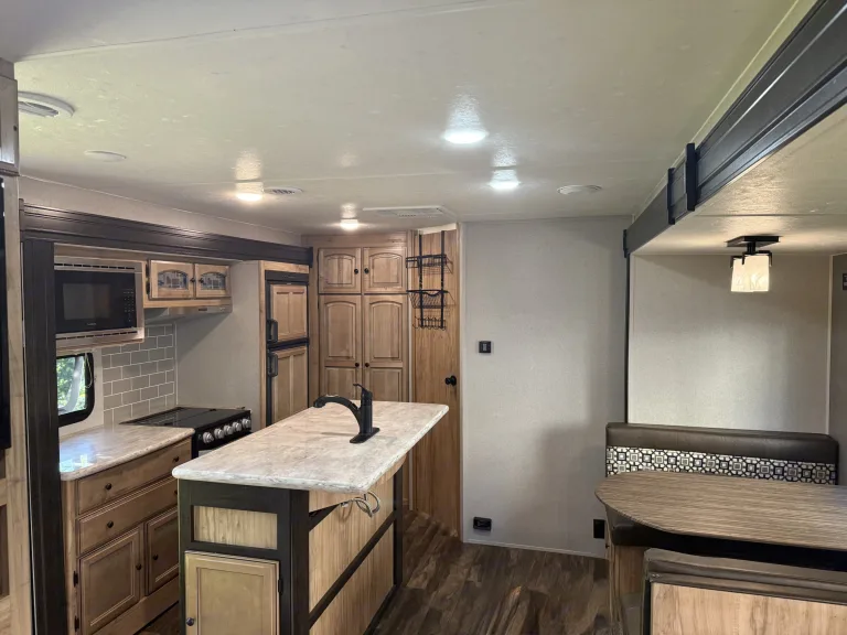 -Ample storage space, even with a fully stocked trailer. Despite having everything you need for a trip, this RV has some much storage space that you will still have plenty of room for your own belongings!
