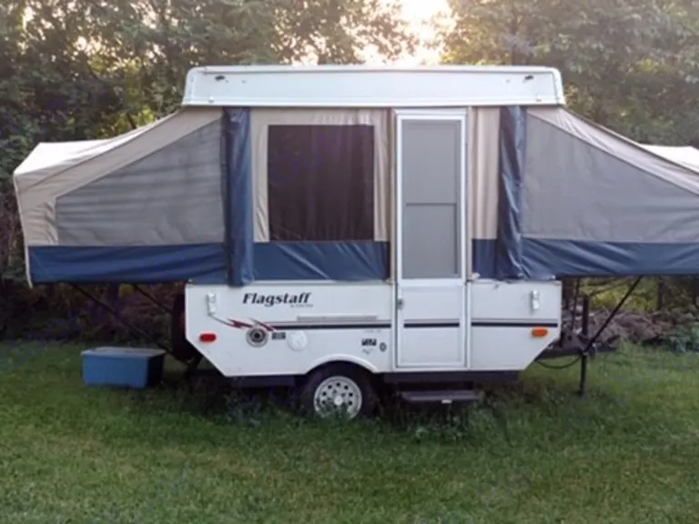 This light-weight easy to set up pop up camper is nicknamed "the Pack and Play" It comfortably sleeps 5 (fold down table) - with young, small children, it could easily fit 6. Perfect for young family or campers who would prefer to be outside all day and sleep up and off the ground!