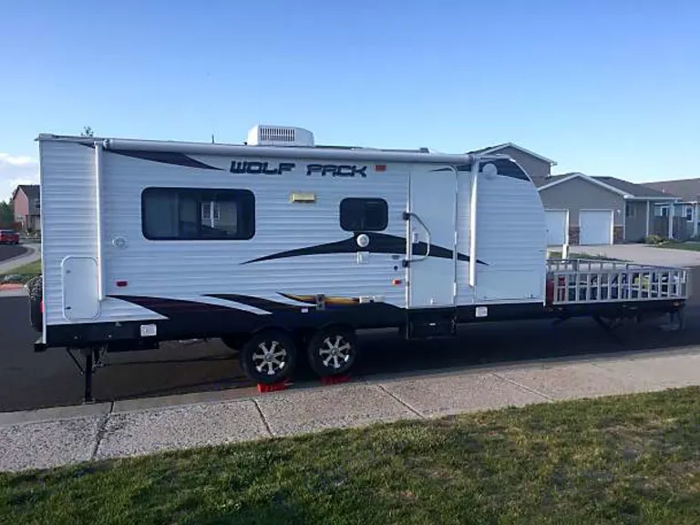 This beautiful camper has everything you need for your outdoor adventure! It features ample sleeping space for 6 to 8. There is a 5 foot slide out with a king sized mattress at the back end and at the front you will find a bunk bed with a twin mattress on top and double on the bottom. The couch can fold down flat for additional sleeping space! The living space: You will have seating that wraps around 3 sides of the table with a couch just opposite the table. The kitchen has a double sink, 3 burner stove, microwave and a refrigerator/freezer. It is stocked with pots and pans, utensils, plates and bowls, coffee pot and mugs. Also included is a flat screen TV and digital touch screen stereo/CD/DVD player. Tons of storage space!! The bathroom has a full sized shower with skylight, sink and toilet. You will find storage space in the cabinet and behind the mirror. There is also an outdoor shower should you choose to indulge. This camper also has a rack in front for hauling all your toys and/or supplies! It can easily fit two ATV's or it has chocks for 3 dirt bike, and any other extras that you want to take with you. 40 Gallon auxiliary gas tank to keep you playing all weekend long!Also Includes: