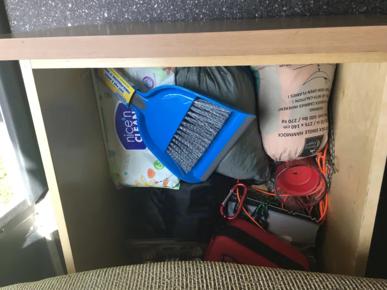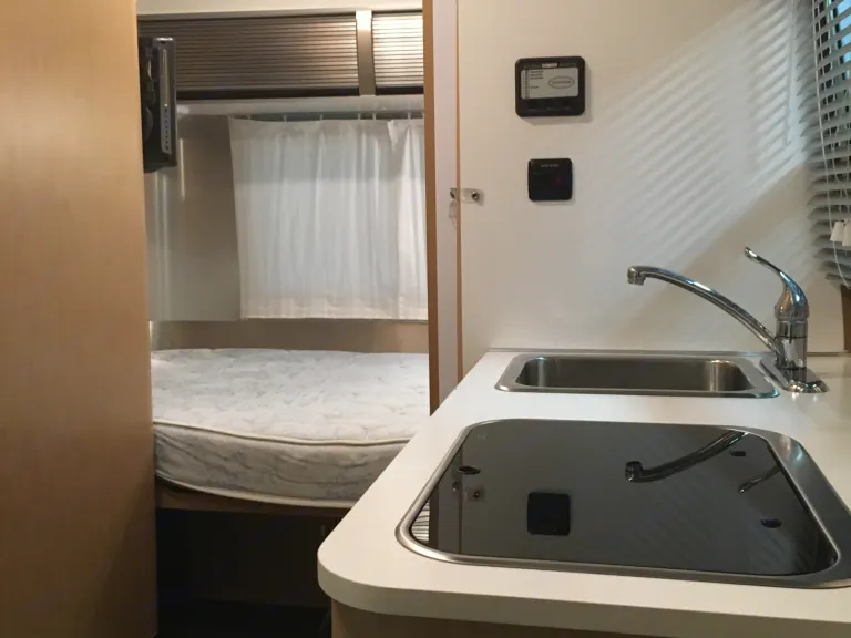 This camper also has a toilette and shower which also converts to outdoor shower for washing off after the beach.