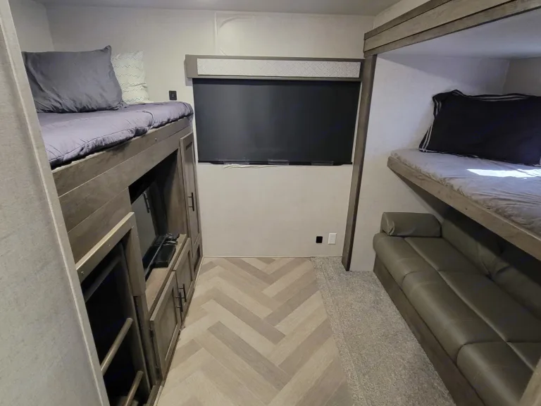Beautiful and spacious RV that comfortably sleeps 9. Comes with all the amenities you could hope for. Dual AC, heated floors, fireplace, 2 TVs, outdoor grill and kitchen with LED lights and surround sound system. Fully furnished just bring your clothes and food. What's includedAll kitchen utensils, cooking supplies, serving sets for 8. Fresh linen including blankets and pillows for 7. Towels, coffee pot and gift coffee set. 4 camping chairs, portable table, DVD player with assorted DVDs, outdoor activities for kids. RecommendationsSince this is a big unit we recommend verifying your towing capacity prior to booking. Diesel trucks or 2500's or higher pull best.Also note the generator we have is a large 50AMP to run both AC's and weighs over 100 lbs. Other things to noteRV must be returned emptied and clean. There is a $50.00 fee for emptying RV tanks. As well as a propane refill fee.