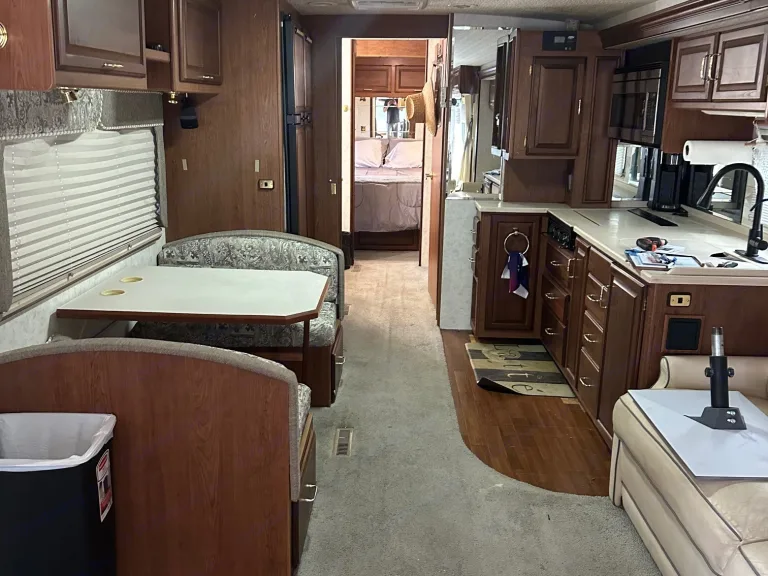 Enjoy this Class A motorhome with two slides at the cost of something much smaller. Because it is diesel, the running costs are lower (better fuel mileage and lower cost per gallon). It is in the process of being restored, so you get the benefit of a lower daily price! All new fixtures, new microwave/convection oven, new toilet, new solar controller, new radio/Bluetooth, new CB/SSB, new Wifi (Starlink), firestick for TV, new inverter and controller, new house batteries and new tires. Awnings all work perfectly as well.What's includedIncludes bedding, 3x sleeping bags, 2 inch foam bed tops for couch and dinette, towels, dishware, pots pans and utensils. Also includes some chairs, outside mat, and other useful items. Two electric bikes and bike carrier available at an extra charge.Other things to noteNo smoking allowed inside.