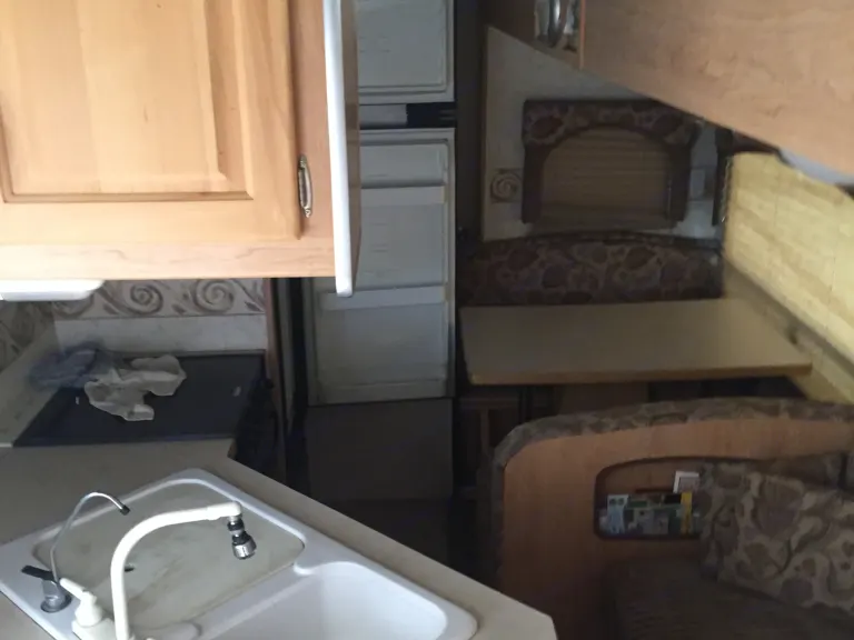 Very roomy living area with 4’ slide out, queen size master bedroom with nice dressing area. Couch pulls out, bunk room in back with double lower bed and single top. Dining table also comes down into a double bed. Lots of storage.