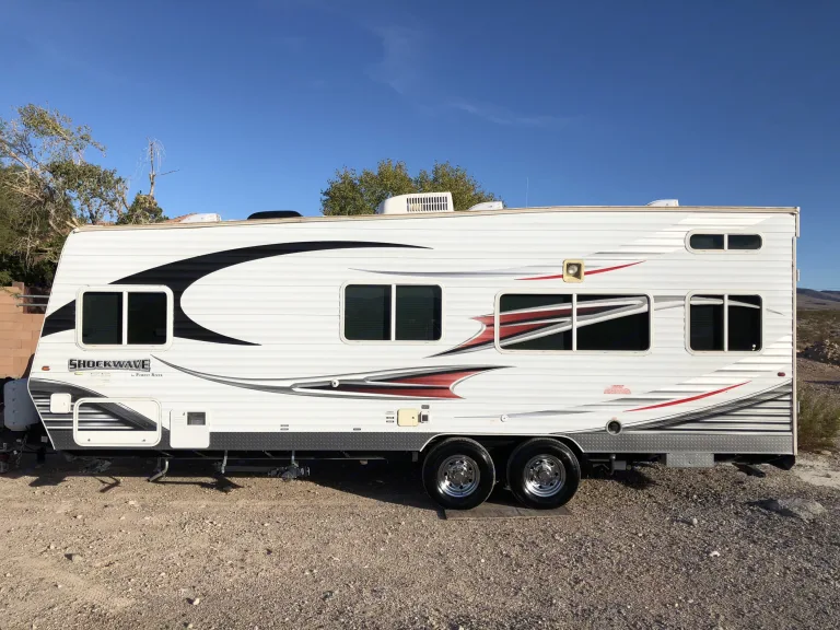 Super clean 2010 forest river shockwave in great condition and extremely well-maintained. Fits a two seater Polaris razor. Sleeps up to 6 with a front bed and two electric beds in back along with a couch that folds into a bed. Camper comes stocked with spices, dishes, towels, linens, soaps and toilet paper. Cozy and comfortable home away from home!
