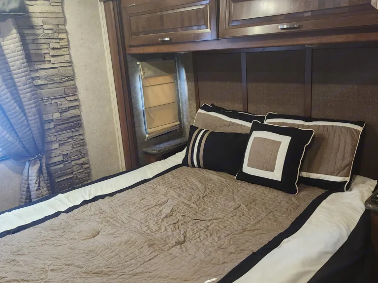 She will do it safely with her inside large-mirrors and backup camera for those hard-to-back-in camping spots. She comes with 23 slides, one in the dining room and 2 in the main bedroom to give you plenty of walking room. Also has closets and plenty of drawers for all of your storage needs. She will keep you cool in the summer and warm in the winter with her 2 A/C/Heater units. This sleeps 8 people 2 in the sofa that converts into a queen bed, 2 in the dinnet set wich converts into a full bed has 1 bunk bed with 2 beds and comfortable memory queen size mattress in the rear bedroom. Has pocket doors to give you the privacy you need in the rear bedroom. She will do it safely with her inside large-mirrors and backup camera for those hard-to-back-in camping spots. She comes with 23 slides, one in the dining room and 2 in the main bedroom to give you plenty of walking room. Also has closets and plenty of drawers for all of your storage needs. She will keep you cool in the summer and warm in the winter with her 2 A/C/Heater units. This sleeps 8 people 2 in the sofa that converts into a queen bed, 2 in the dinnet set wich converts into a full bed has 1 bunk bed with 2 beds and comfortable memory queen size mattress in the rear bedroom. Has pocket doors to give you the privacy you need in the rear bedroom.What's included We i have included to make your trip a more peaceful and enjoyable trip all linens , towels ,cookware ,silverware ,plates ,cups, toaster and coffee maker at no additional charge. Also have 4 camping chairs and foldable picnic table to enjoy meals outside the rv.RecommendationsLAUGHLIN NEVADA
