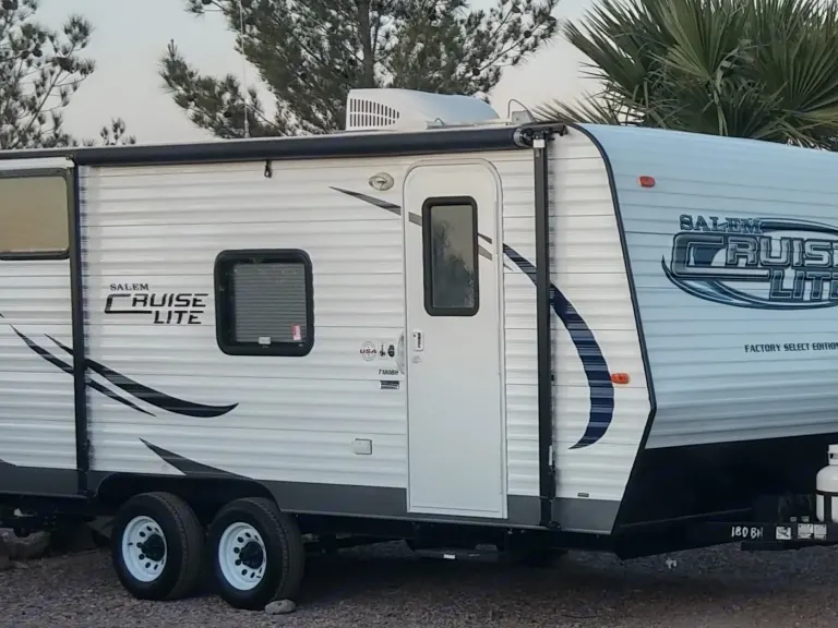 Small, Lightweight, Travel Trailer Ready for all your Adventures.. Sleeps up to 5 comfortably and Tows Easily.. From $50 to $75 per Night..18ft Bunkhouse Travel Trailer.. Sleeps 5-6 comfortably.. Has all basic amenities and is easy to tow.. Dry weight is #3583 and can be towed with most SUV`s and Trucks.. Trailer is approximately 20' long from end to end..Trailer has Full Size Bed with Twin above.. Couch and Dinette convert into beds as well..