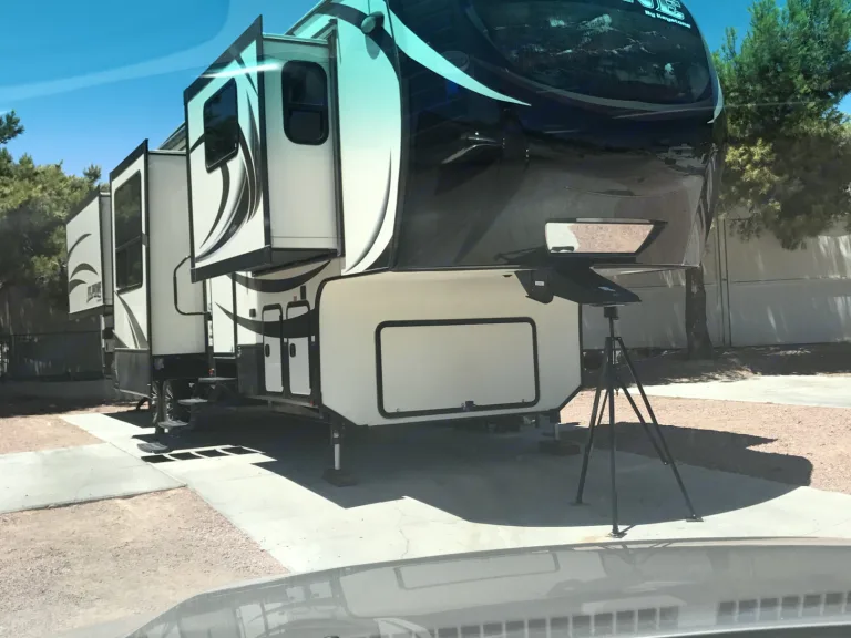 It is an Amazing fifth wheel that is luxurious and feels like home from the second you step into it! It has a fireplace, queen bed beautiful chefs kitchen dining for up to four! Awning.... master bedroom with additional fold out bed in living room. Has a 50" tv with Bose sound system in living room and 32" in bedroom. 6 slide outs that makes for a lot of interior space! You'll be happy you chose this fifth wheel! :-)