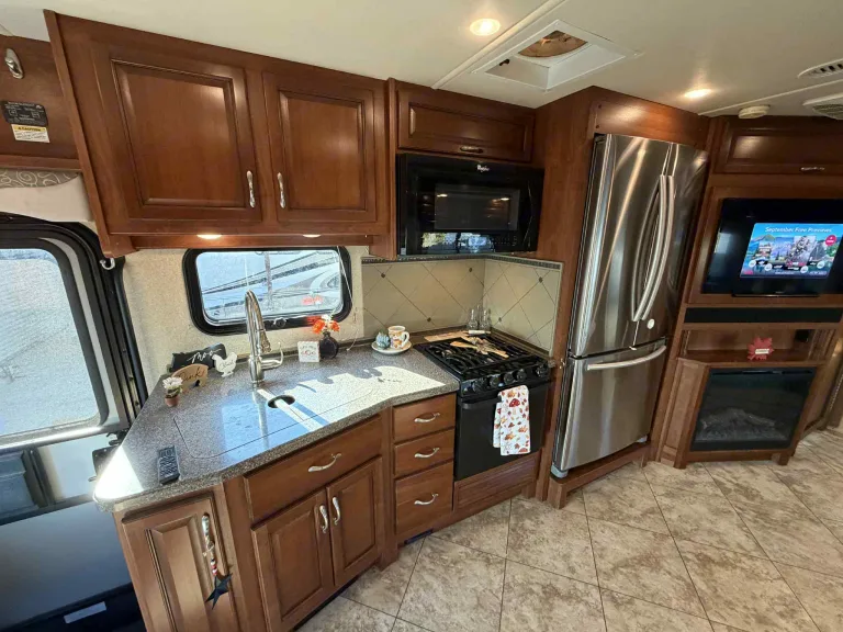 • Secure all items before driving — cabinets, fridge, awning, and slide must be properly closed.