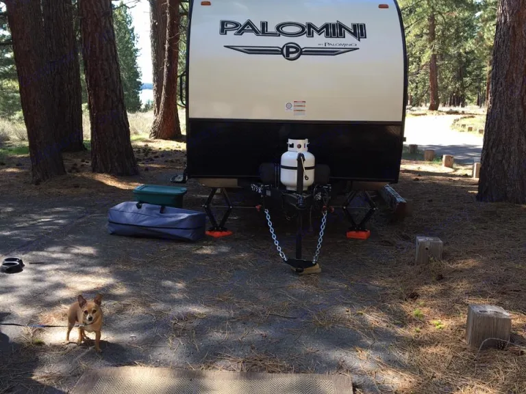 Our great little trailer is well maintained, modern and tough enough for any camping experience. Light enough to be pulled by a 6 cylinder vehicle (recommend 8 cyl if you're headed to the mountains. Lifted frame, off-road mud terrain tires and diamond plating for added protection.A/C and both gas and electric heat.