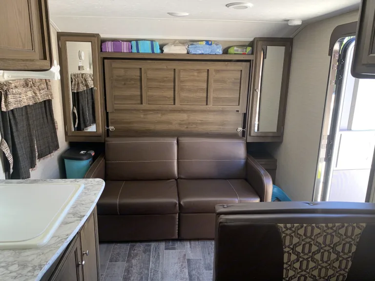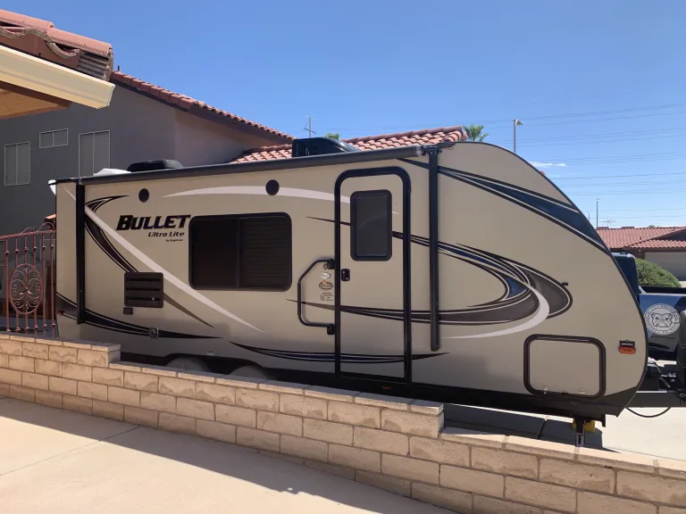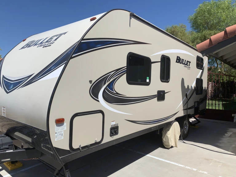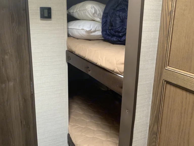 A 2017 Keystone Bullet Model 202Bhswe 24’4” travel trailer with bunk beds, 4 person dinette that fold into additional bed, a queen size Murphy bed With 3” gel memory foam topper for added comfort that folds down over a couch. There’s a full bathroom with tub/shower combo, 2 door fridge/freezer combo, oven and 3 burner cooktop, microwave and a deep sink. There’s an electric awning with led strip lights, sound system with outdoor speakers and a tv with built in DVD player for the kids or adults to watch movies. 43 gallon waste water and 30 gallon grey & fresh water tanks. 40 gallons of propane. Enclosed and heated underbelly. An electric tongue jack for easy set, stabilizers and sway control. Must have electric brake set up to haul. Kept in like new condition!