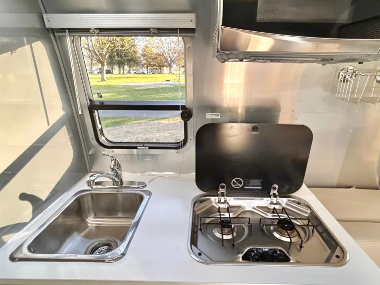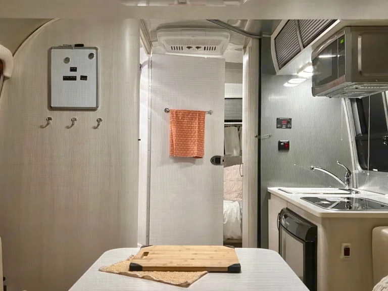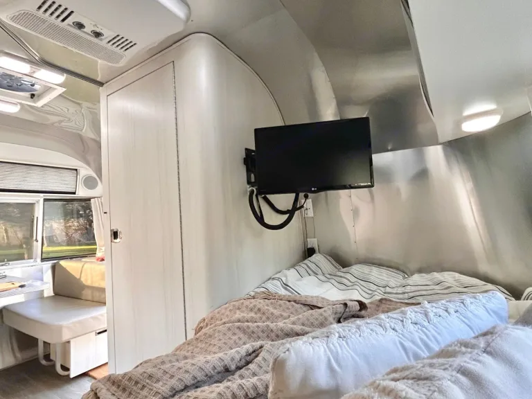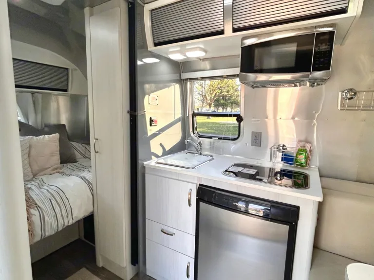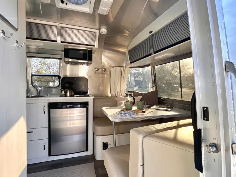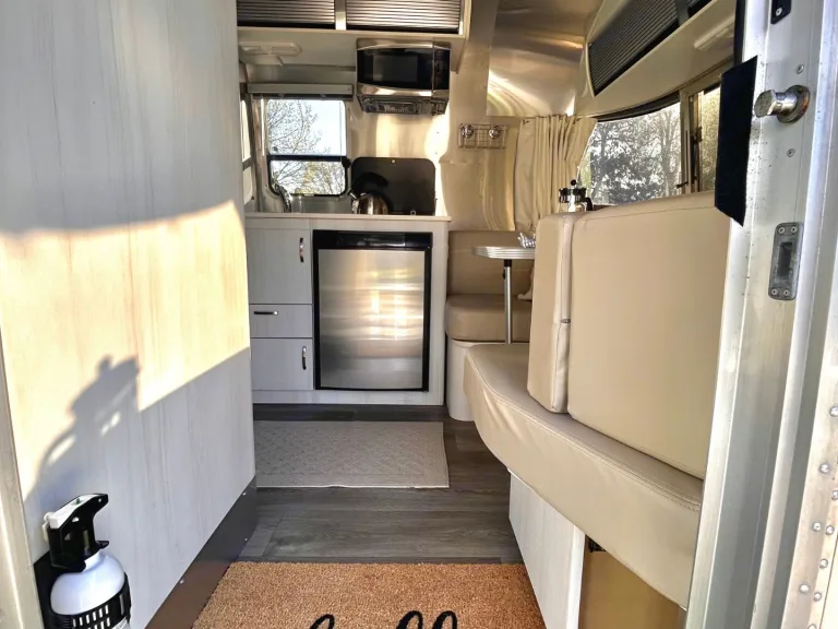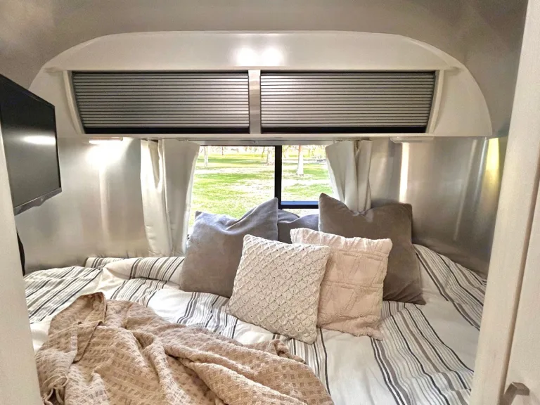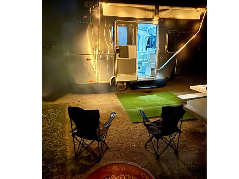 Memory foam mattress with linens and towels for 2 people (extra bedding available as add-on)Fully stocked kitchen (dishes, utensils, pots & pans, coffee maker)Built-in speakers and TV for entertainmentHand soap,towels for two, toilet paper, and sani pods providedTwo camp chairs included, and outdoor mat for relaxing outside. Upgrade your camp chair to a gravity chair, see our add ons list.Things to Know