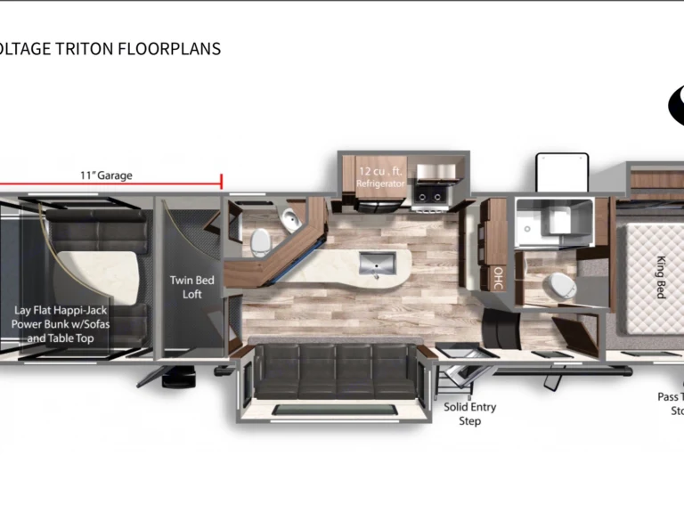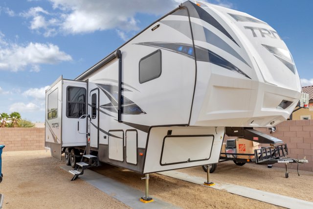 We understand that many families have been cooped up and quarantined as a result of the Covid-19 pandemic and our family is thrilled to offer a relief for those looking to travel and make happy memories the safest and most convenient way possible.Due to the Covid-19 pandemic outbreak we have implemented extra precautions to ensure that our valued renters are safe. Prior to each rental we professionally deep clean and disinfect the entire rig to ensure all surfaces are sanitized and safe. We promise have it cleaned with as much care and detail for you as we would for our own family.This barely-used top-of-the-line luxury 2018 Dutchmen Voltage Triton 3551 is the perfect home away from home for your family!Complete with 3 slides, 3 sofas, a dinette, multiple sleeping areas including a queen-sized Master bedroom, twin bed loft, and power bunk with two queen beds this spacious 5th Wheel Toy Hauler sleeps 7 people.Special features include spacious shower, modern interior, flexible toy hauler area with dinette or double queen bunk beds and 8' deck, 2 bathrooms, flat screen tvs, midsize spacious fridge, private Master suite, and ample storage.The self-leveling hydrollic system, large power patio awning with LED lights and speakers, multiple ceiling fans, and 5500 watt generator will keep you comfortable and safe throughout your journey.Other Things TO Note: