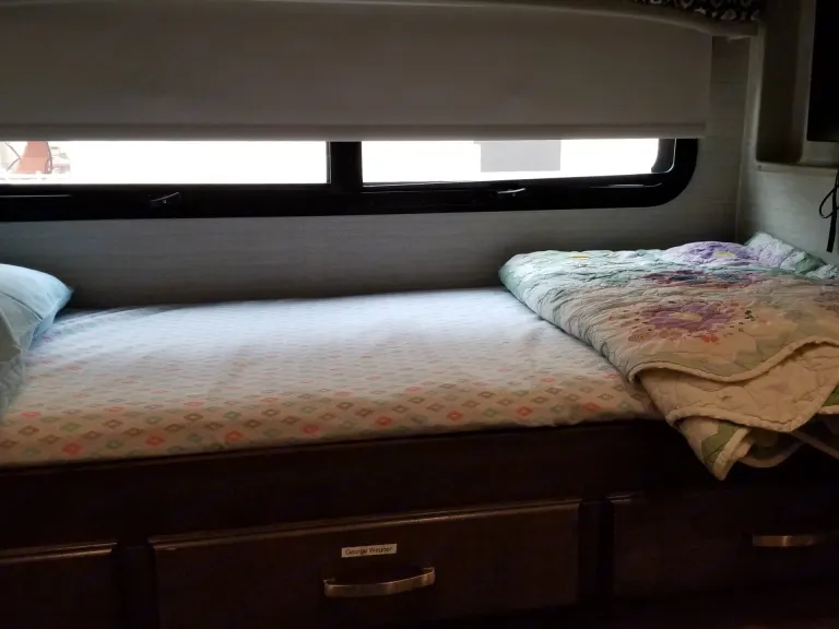EDC is our only rental. No smoking and no pets! Our rig has comfortable bunkbeds for guests under 6 ft tall. There is a queen bed for 2, and a huge bed over the driver for 2, plus option to convert dinette and sofa to beds. Our RV has a bright interior. We provide all bedding, pillows, towels, dishes, pots/pans, as well as a large camping table and camping chairs. Power is 30amp, or use the generator. For EDC, it is most convenient to rent a spot with 30 amp hookup because of hot weather and use of the rig's A/C.What's includedAll bed sheets, pillows, pillow liners, pillow cases, mattress liners, blankets, bath towels, hand towels, kitchen towels, dishes, silverware, pots and pans, paper towels, toilet paper, starter water jug, camping chairs, table, tablecloth, and more! RecommendationsFor the Electric Daisy Carnival (EDC), our rig is perfect and this is an easy rental for you and for us. We are no longer renting our rig for out-of-town trips (we're saving it for our own family's use). When you book your RV spot at EDC, you should seriously consider paying for the electricity connection (30amp) so that you can use the A/C in the RV most easily. Backup plan would be to use the generator, if the campsite allows it.Other things to noteNo smoking. No pets.