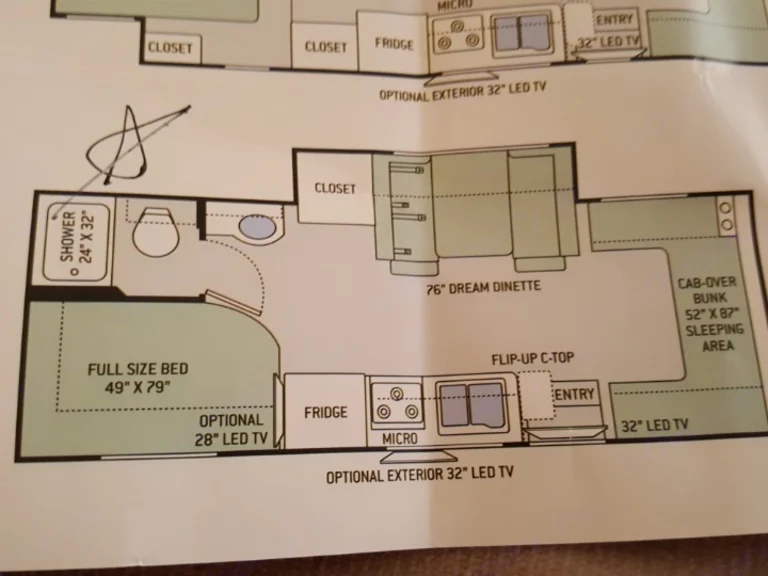Sleeping quarters:Bathroom includes:32” walk in shower