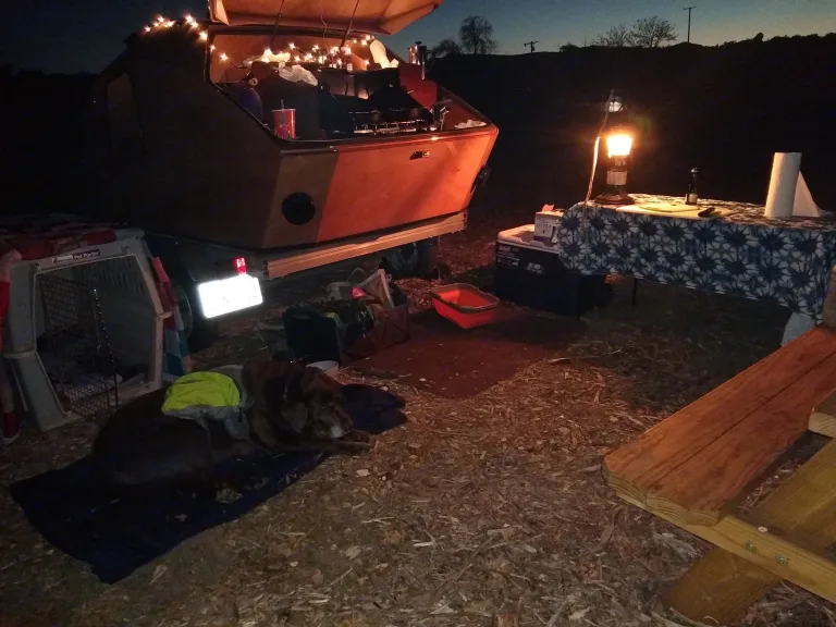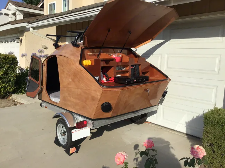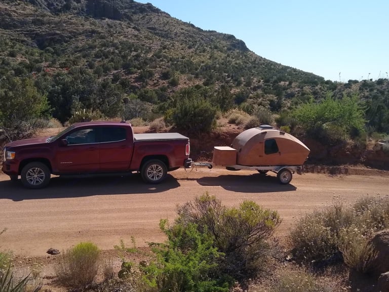 We want to make camping with our camper as easy as possible for you, so you can enjoy the wonderful outdoors. We have a Chesapeake Light Craft Teardrop. It is a light weight teardrop with a unique style. This rental is for the trailer and includes the queen sized mattress and the battery for the fan, lights and USB chargers.If you don't have all the gear please look at our other listing. What's includedWe want to make camping with our camper as easy as possible for you, so you can enjoy the wonderful outdoors. We have a Chesapeake Light Craft Teardrop, a light weight teardrop (600 pound empty weight) with a unique style. The trailer has a queen sized mattress and despite it's size most people can sit up with no issues. A roof vent to keep condensation out during cool nights.The trailer has a small battery, enough to run the fan for two nights and charge phones/tablets. There are four USB charge ports in the cabin and two in the galley.RecommendationsBased in Las Vegas, NV there are many places close by to head off to be around nature.The trailer has an empty weight of 600 pounds with a tongue weight of 100 pounds. It connects to a 2 inch ball hitch. Most small cars can tow this trailer with the proper hitch. A Kia Nero was used to bring the trailer out to California from Maryland. Our driver said the trailer rode very well and was easy to move around. A Class II hitch and a 4 prong plug is required. Please don’t overload more than 80% of your vehicle max weight. The trailer has a standard 4 prong plug for tail lights.Other things to notePets welcome if you can find room for them. Inside is small but comfortable for two.