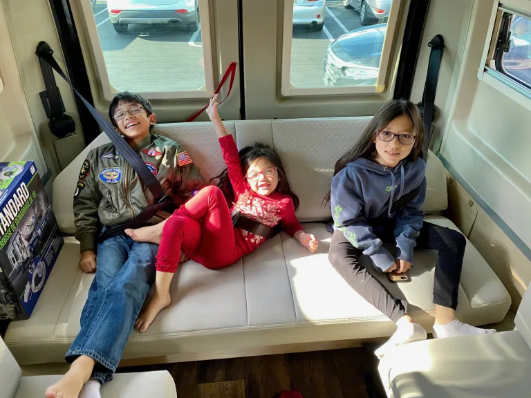Our van is 21 ft long with a permanent bed lifted so there is plenty of space underneath for all your adventure gear. The main bed is also topped with memory foam mattress for extra comfort and can fit comfortably with 2 adults and1 child or 3 children. The pop up loft features a memory foam and can fit 2 adults or 3 kids. The van is equipped with a Weboost wifi/cell phone extender so you can work or be entertained in more remote places. The van comes with a cassette toilet so you can dump at any toilet facility, no need to look for an RV dump station. The water can be heated by electric, gas or both. The stove uses gas so your battery can last longer for other uses. The van is also equipped with 2 brand new lithium batteries and inverter to maximize your off grid camping time. It is equipped with a volt start so your batteries will be charged automatically if needed. The van is packed with all the amenities such as a wet bath with cassette toilet, 2 sinks and shower. The kitchen has a refrigerator with freezer compartment, 2 stoves, a kitchen sink and a microwave/air fryer/oven. There are plenty of storage space, pantry , closet, drawers and cabinets. What's includedDue to Covid-19 we recommend our renters to pack their own linens and towels. it comes with cookware and utensils, toilet papers, porta-pak holding tank deodorizer packages.RecommendationsWe have taken our van along the Pacific Coast and park along the beach to enjoy the sunsets and the ocean waves. We have also taken our van to ski resorts in Colorado, Utah, California, Wyoming. We have enjoyed the Grand Teton, Yellowstone and all National Parks nearby in our Camper Van . This van can practically take you almost wherever your heart desires to live freely and off-grid without having to pay for an RV camp site.Other things to noteNo off roading, no smoking of any kinds allowed, Our children have allergies to cats and dogs. Please no pets allowed. We prefer our renters to dump their own cassette toilets and gray tank before returning. $100 fee will be assessed if returned not emptied. Additional items can be rented for additional enjoyment, please see add-ons.