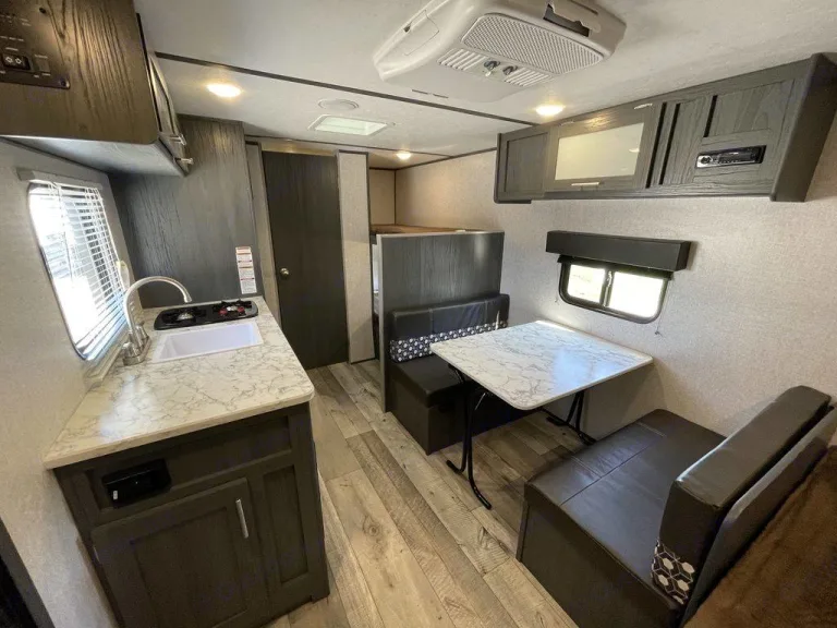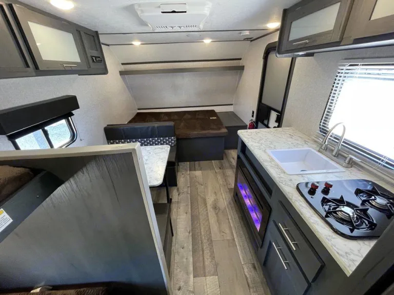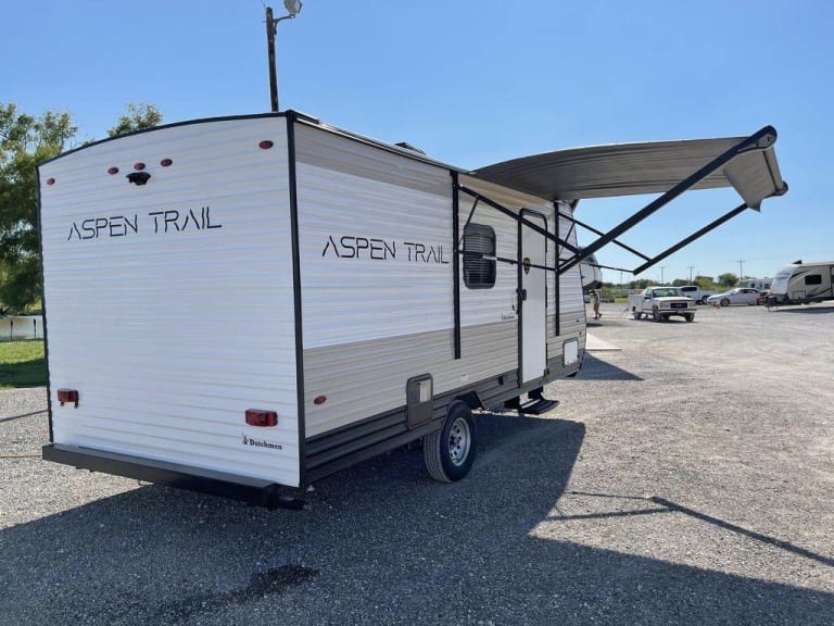 Pack your bags and enjoy our brand new Aspen Trail LE travel trailer that can comfortably sleep five people each night. The kids will love the bunk beds while mom and dad enjoy the front residential queen bed. There is even space for one more guest on the booth dinette once it's folded down for the night. You can store all your food in the 7 cu. ft. refrigerator and prepare breakfast on the three-burner range. This model includes a private toilet and shower so that you can get cleaned up after a day of hiking, and you'll find overhead cabinets for all your items.With each Aspen Trail LE travel trailer by Dutchmen RV, you can travel light with plenty of luxuries to make every stay comfortable and enjoyable. From the 13,500 BTU air conditioner, the interior LED lighting, and the upgraded residential flooring, to the microwave and galley sink with high-rise faucet, you will never miss out on any of your favorite features from home when you take the Aspen Trail LE with you on all of your upcoming adventures.This rental includes the following for 4 people: linens, blankets, pillows, towels, pots, pans, dishes, silverware, cups, toilet paper, and Cleaning supplies are also provided. Water line and sewer hoses for utility hook-up will also be included. You will need to bring any camping supplies you wish to bring along.RV is located at 837 Clarkway Dr, Las Vegas, NV 89106This is a non-smoking and no pets unit. A $500 fee will be if either has been in the trailer. There is also a $50 fee if keys are not returned or lost.