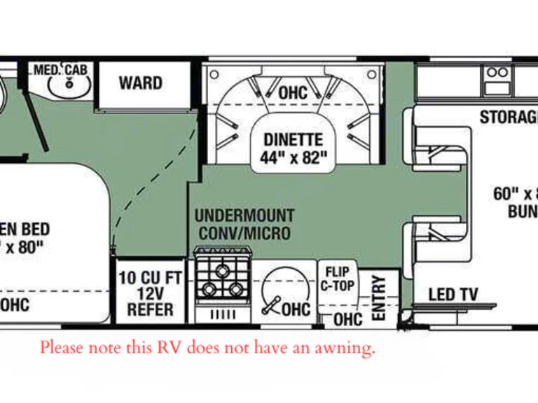 Cab-over TV with Blu-ray DVD player and included DVDs.Powerful & Reliable