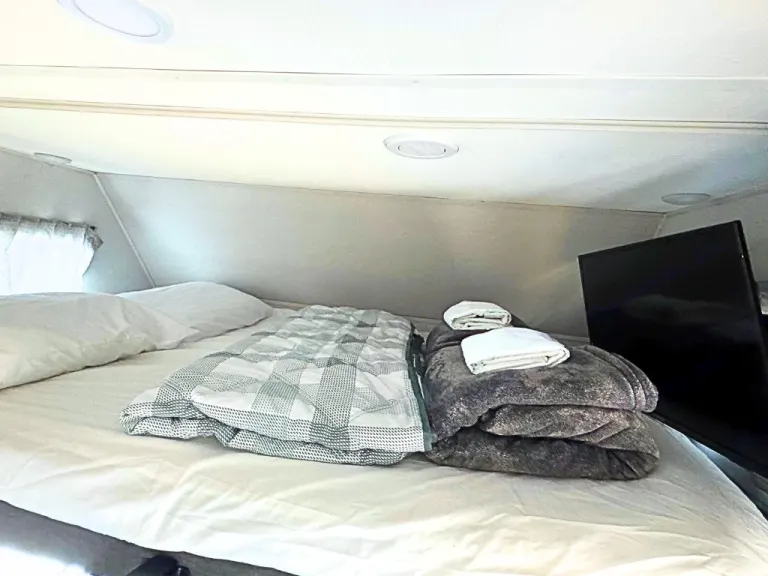 Queen Bed (54” x 80”) with an upgraded mattress for added comfort.