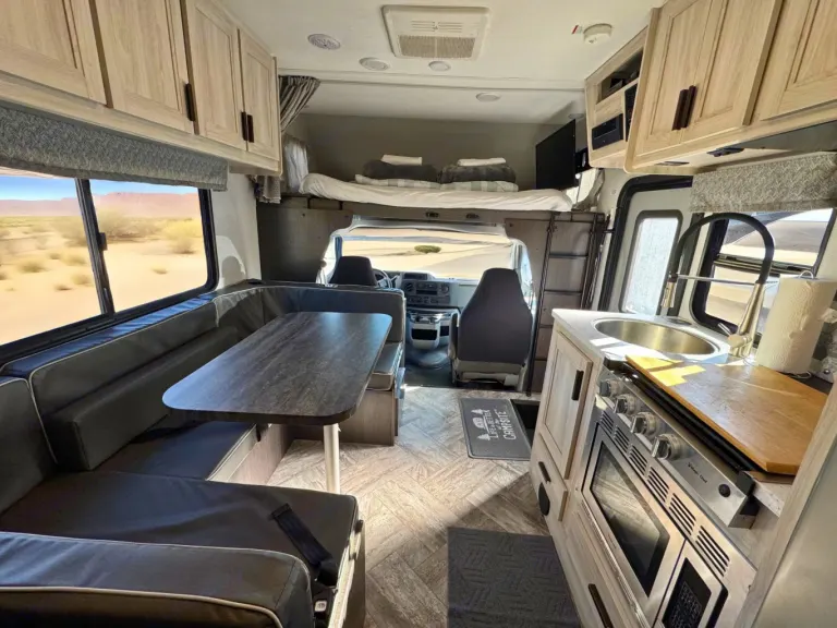 Meet “Bear” – Your Adventure-Ready RVDiscover the beauty of the Southwest in “Solar Bear” a compact and comfortable Solar powered 25-foot Class C RV. Perfect for first-time renters or seasoned travelers, Bear’s manageable size makes driving and parking a breeze. Whether you’re planning a romantic honeymoon, a family vacation, or a friends’ getaway, Bear has everything you need for an unforgettable journey.Comfortable Living & Dining
