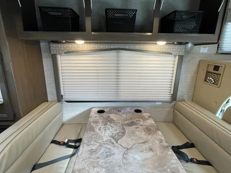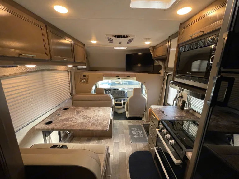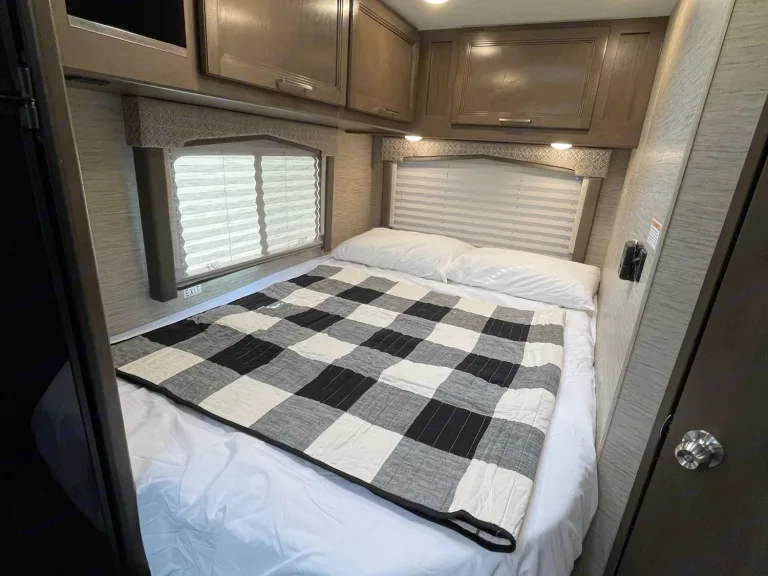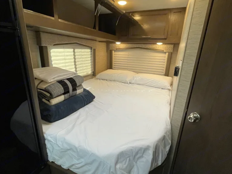 Discover freedom on wheels with the Ford Chassis V8 engine, automatic transmission, power steering, and cruise control. Side mirrors with bi-view mirrors for blind spot viewing. For your electrical needs a 4000-Watt generator and electric 30-amp inlet, with an additional 50-amp converter included with our rental. A roomy outdoor storage compartment for all your outdoor equipment can fit coolers, camping chairs, outdoor games, or luggage. Enjoy a shaded picnic outdoors with the powered Patio awning with LED lighting.Additional Features