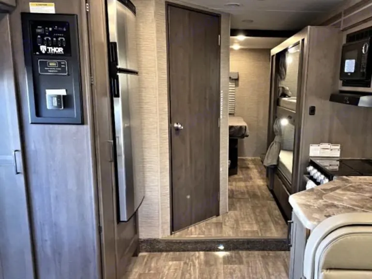 Inside, enjoy the spacious layout with a full slide-out that creates room to relax or entertain. The private bedroom features a comfortable queen-sized bed, bunk beds and additional sleeping options include a cab-over bunk, convertible dinette, and jack-knife sofa — easily sleeping up to 8 guests.Enjoy your favorite meals on the go with a fully stocked kitchen that includes a refrigerator, microwave, 3-burner cooktop, and oven. The bathroom offers a full shower, sink, and toilet for added convenience wherever you roam.Driving is a breeze with a smooth ride, backup camera, and Apple CarPlay/Android Auto on a touchscreen dash. Whether you’re a first-time RV driver or a seasoned road warrior, this rig is easy to handle and ready for the open road.Additional features:Power awning with LED lightsOnboard generatorPlenty of storage inside and outClimate control with A/C and heatPet-friendly — bring your furry companions along!Book your getaway today and take the wheel of freedom in the 2023 Thor Chateau — your home wherever you go.What's included• What's Included with Your RV Rental:Fresh linens & pillowsCookware & utensilsPlates, cups & silverwareCoffee makerRV toilet paperOutdoor rug & camping chairsFull propane tankClean water tank filledSewer hose & water hose24/7 roadside assistanceRecommendationsLas Vegas is surrounded by stunning natural landscapes perfect for RV adventures. Red Rock Canyon National Conservation Area, just 15 miles west of the city, offers breathtaking sandstone formations and hiking trails. Mount Charleston, about 35 miles northwest, provides cooler temperatures and alpine scenery. For a unique experience, Valley of Fire State Park, 50 miles northeast, features vibrant red sandstone formations.Other things to noteNo smoking: Smoking inside the RV is strictly prohibited to maintain a fresh and clean environment.No off-road drivingNo pets on furnitureNo climbing on the roofProper waste disposal: Follow instructions for using and emptying the waste tanks to prevent clogs and odors.No open flames inside: Avoid using candles or open flames inside the RV to prevent fire hazards.Secure items while driving
