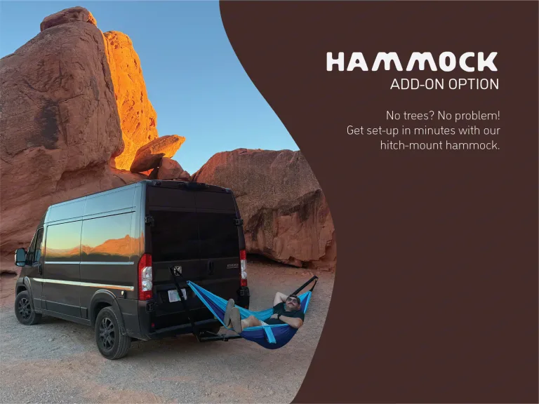 Lounge anywhere in a matter of minutes, with our hitch-mount hammock stand. Hammock included.