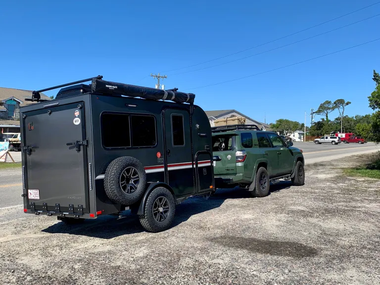 RV Park, boondocking, and off-road capable. The InTech Explore is a versatile and lightweight toy hauler equipped for adventure. Weighing only 2,020 lbs with a tongue weight of 410 lbs allows a greater diversity of tow vehicles. The Explore features a pop out queen size bed (roadside), slide out kitchen with a two burner propane stove and 12 / 120v Dometic refrigerator.Electrical systems include 30A external plug and the unit is solar ready. Upgraded solar charger controller and 200AH AGM batteries allow you to go longer without recharging. 12V and 120V (shore power only) outlets. Comfort includes 9,500 BTU roof air conditioner with heat strip (shore power only) and MaxAir fan.The cargo area is 66H/69W/97L. Carrying capacity is approx 1200 lbs and can fit a large motorcycle, dirt bikes, quads, and any gear. The explore also has a roof rack for kayaks and a receiver for bike or cargo racks (not to exceed 100 lbs total). What's includedRoof mounted 100V solar panel. 2300w Generator for additional fee. Queen size mattress, and blow up mattress for additional fee. Privacy tent.RecommendationsIgnore the crowded campgrounds, look at Campendium and explore the lakes and wildlife refuges of Oklahoma and Texas. Other things to noteRenters must have a tow vehicle capable of the tow specifications. Tow controller strongly recommended but not required. Do not run the battery below 50% capacity before recharging with shore, generator, or solar.