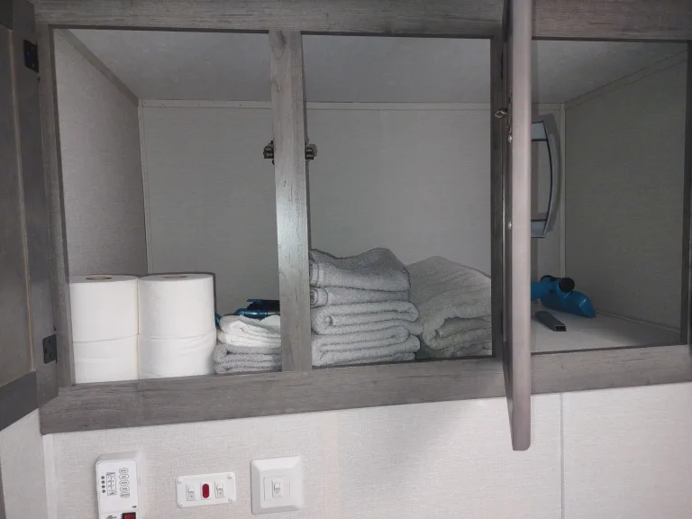 Cooking set, 2 Pans, 1 Skillet, Spatula, tongs, and fork, knives measuring spoons and cups. Cutting Board, and Pot holders.Toilet Paper and paper towels with all chemicals for waste tank.linen included at your RequestAll hoses and electrical cord required for hook ups.Prep Fee includes trailer cleaning, Stocking Items, Sanitation of Tanks.