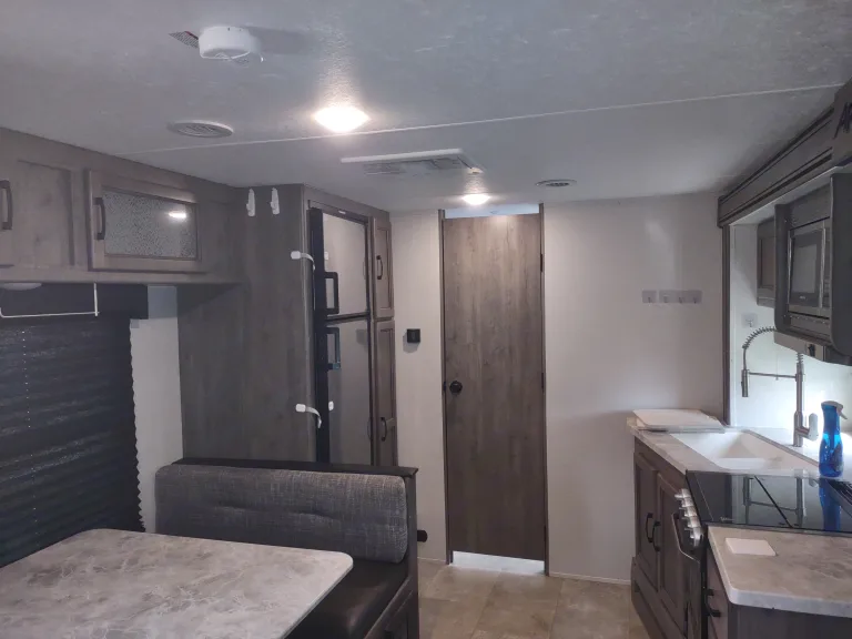All Weather Rated Camping, Adventure in this cozy camper Sleeps 2 Adults and 2 Children. Has Full size Queen Bed (Brooklyn Bedding Dreamfoam Hybrid mattress), Jack Knife Couch, and Booth. Couch and booth convert to beds. 3 Burner Stove, Oven and a microwave. 32 in TV with Radio, Bluetooth, DVD system. Indoor and outdoor speakers. Outside Kitchen with Fridge, Sink, and Grill. Heated tanks and an enclosed underbelly... Easy Tow for most full size trucks, LED Lighting Inside and out. Inside 8 cuft fridge runs on gas and electricity, 6Gal Water heater electric and Gas, 100 amp Hr battery will run lights outside fridge, radio, and pump for up to 2days. (Generator available at extra charge) Anti-sway and load balancing hitch available at extra charge. Delivery to campsite available.