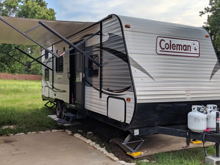 The Coleman lantern is a travel trailer. There is a camper queen at the front and two full size bunk beds at the back by the full bathroom (has a tub/shower combination). The couch and dining table both fold down to be single beds. Sleeps 6 adults comfortably or 2 adults and 6-8 kids. The kitchen has a full stove (3 burner gas range and small oven), sink and a microwave as well as a fridge with separate fridge and freezer compartments. The fridge will automatically switch over to gas when it's not plugged into electricity or it can be set to run on electricity only. The are two flat screen TVs. One over the dining table and the second in the Master bed area. It has plenty of storage for its size.