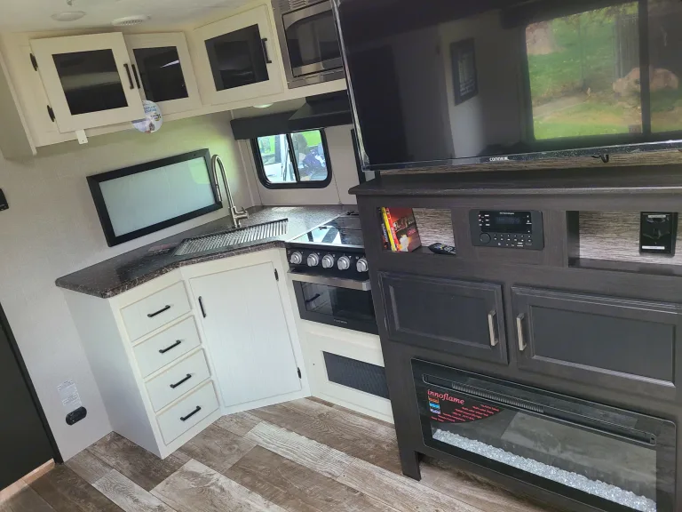 The Tardis is a brand new 2021 Stratus trailer. Fully equipped with queen-sized bed, sink, stove with oven, refrigerator, microwave, A/C, heater, Tv, fire place, awning, inside and outside speakers, exterior sink, exterior mini fridge, exterior mini stove, private bedroom, double sized bunk beds. Tons of storage space underneath for all your adventure gear plus back rack for storage. What's includedDelivery and pick up with in 75 mile radius available upon request. RecommendationsTrailer doesn't come with an equalizer hitch. 3/4 ton truck or bigger recommended for this trailer. Other things to noteNo Pets, No festivals, No smoking, Bring your own linens.