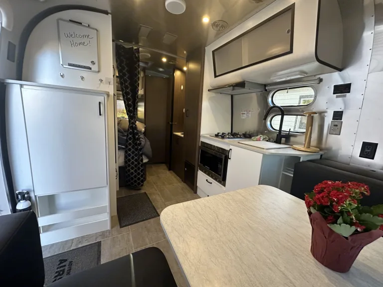 Easy, lightweight, luxury. 2 cozy beds. Awnings, solar, convection microwave. Wireless reverse camera suctions to your windshield. What's includedLinens, pillows, kitchenware, 2-4 chairs, camp table. RecommendationsExplore in any direction to have a blast.