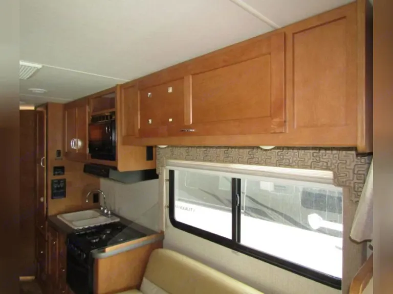 Five-year new 2016 Class C RV medium-size RV would let you in-n-out of any campgrounds easily, even if you are new to RVing (as we were this Spring). No slides! Four double beds so depending on the group arrangements you can sleep 4 to 8 people. You can even do boondocking - three solar panels on the roof and two new (2021) deep-circle house batteries will supply power overnight to necessities: lights, fan, and water pump. The refrigerator switches automatically to propane gas when no AC power (not hooked up or running the generator).