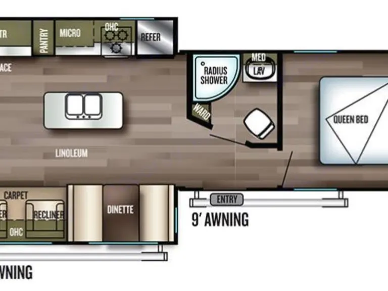 This luxurious, affordable, spacious, and comfortable 2018 Forest River Salem with 80˝ ceiling height, leather sofa, and beautiful Island kitchen.